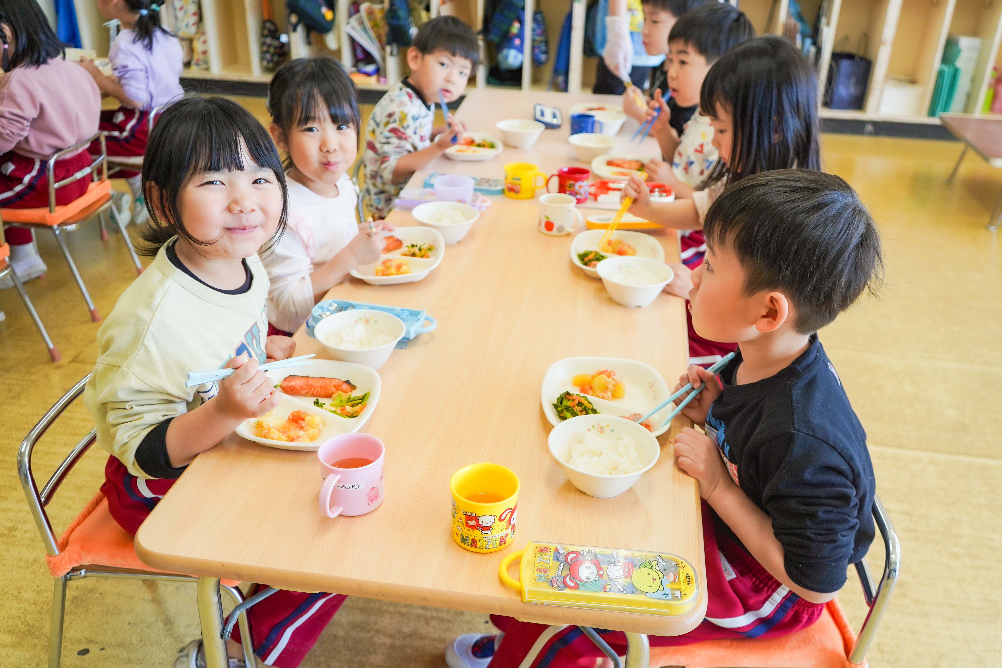 今日は新鮮な野菜をふんだんに使ったメニューでした☆彡 子どもたちも先生の説明を聞いて興味津々でした!