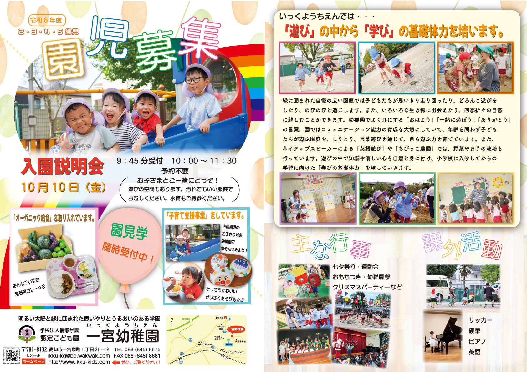 (*)1号園児としての入園の可否は一宮幼稚園が決定します。