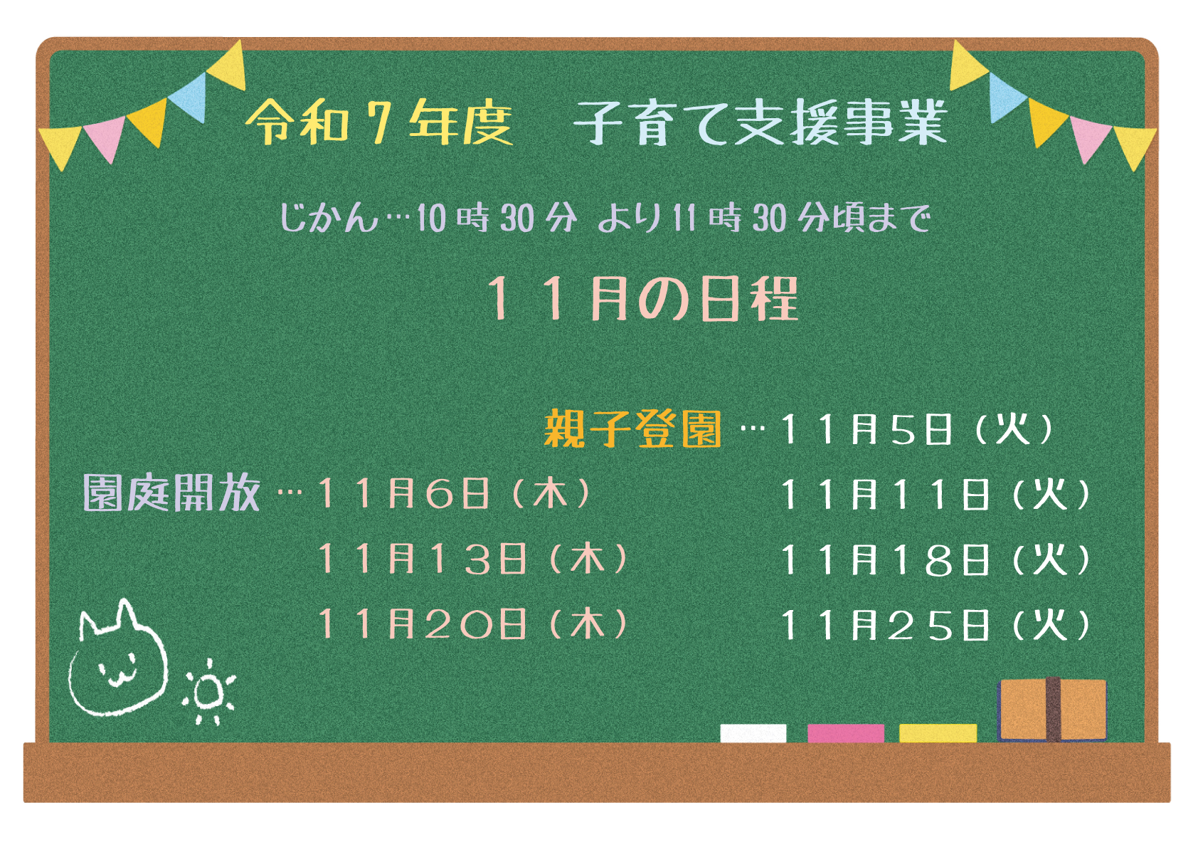 ○活動日:水曜日(10時30分~12時)電話で予約してくれるとうれしいです。(園庭開放の木曜日にも実施します。)